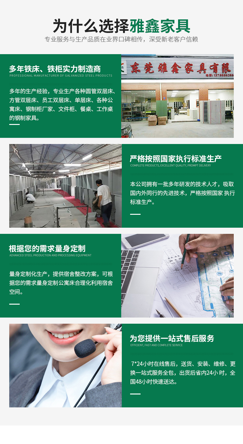 隨著社會(huì)的快速發(fā)展,人們生活水平不斷提高,對(duì)辦公家具的款式、配套、設(shè)計(jì)越來(lái)越講究,為了滿足廣大客戶的要求。因而雅鑫辦公家具對(duì)自己的產(chǎn)品設(shè)計(jì),選料、生產(chǎn)到包裝等各個(gè)程序都運(yùn)用嚴(yán)格的質(zhì)量檢測(cè)手段,務(wù)求使產(chǎn)品體現(xiàn)出其細(xì)致、考究、的一面,本公司所有產(chǎn)品廠家直銷,免費(fèi)上門(mén)測(cè)量設(shè)計(jì),辦公家具免費(fèi)送貨安裝,所有產(chǎn)品保用5年,質(zhì)優(yōu)價(jià)廉,終身維護(hù)。雅鑫以時(shí)尚,實(shí)用的為目的,打造經(jīng)久耐用的家具。我們要做只做好的。