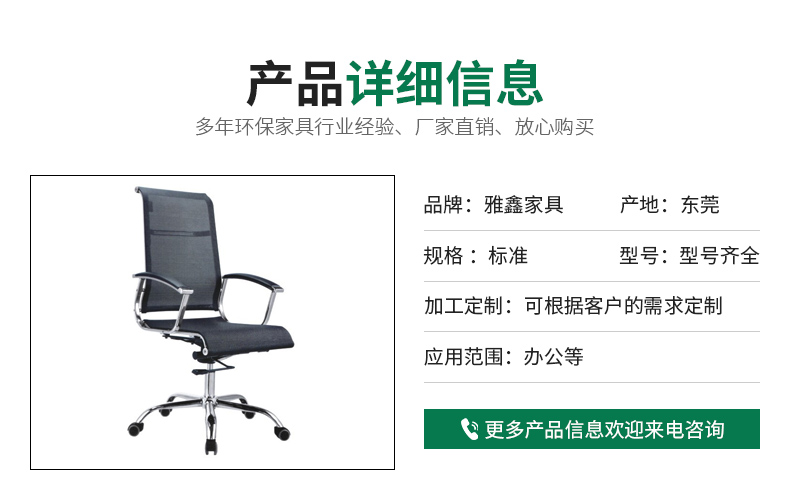 東莞市雅鑫家具有限公司(東莞市茶山雅興家具經(jīng)營(yíng)部)是一家集研發(fā)、設(shè)計(jì)、生產(chǎn)、銷售、安裝于一體的生產(chǎn)企業(yè),專業(yè)生產(chǎn)及定做各類辦公家具,本公司主要生產(chǎn):辦公屏風(fēng)、辦公椅、辦公桌、大班臺(tái)、職員椅、會(huì)議椅、文件柜、訂做各種低、中、高、檔次辦公家具。公司擁有一批高素質(zhì)的管理人員、專業(yè)的技術(shù)人員、和經(jīng)過專業(yè)培訓(xùn)經(jīng)驗(yàn)豐富的生產(chǎn)工人。 雅鑫以現(xiàn)代化為基礎(chǔ),融合古典風(fēng)格的設(shè)計(jì)新型理念,加入中西文化和經(jīng)典元素為您打造不一樣的辦公家具。創(chuàng)新是我們不斷的追求。我們主營(yíng)辦公家具|辦公椅|大班椅|會(huì)議桌|辦公臺(tái)|屏風(fēng)|鐵柜|文件柜|鐵床等系列產(chǎn)品。我們還和多家大型企業(yè)有業(yè)務(wù)往來(lái),深得其信任、選擇雅鑫你放心。
