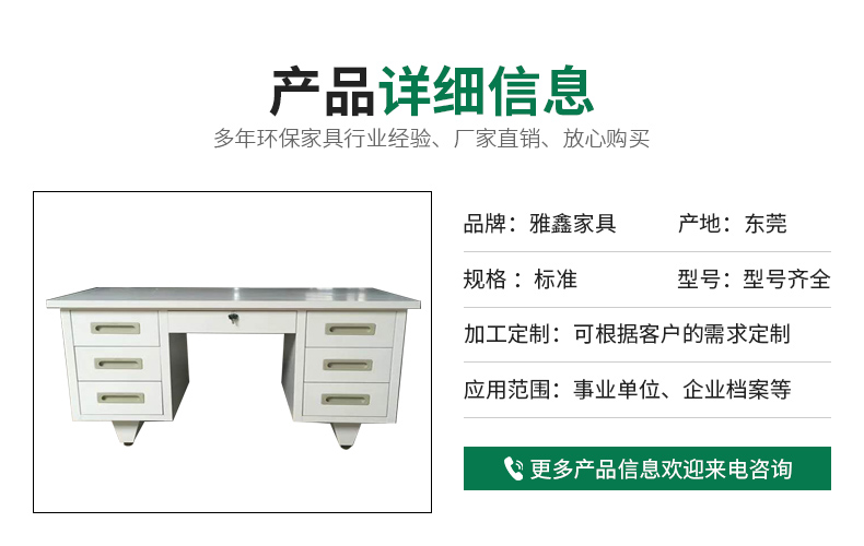 隨著社會的快速發(fā)展,人們生活水平不斷提高,對辦公家具的款式、配套、設(shè)計越來越講究,為了滿足廣大客戶的要求。因而雅鑫辦公家具對自己的產(chǎn)品設(shè)計,選料、生產(chǎn)到包裝等各個程序都運(yùn)用嚴(yán)格的質(zhì)量檢測手段,務(wù)求使產(chǎn)品體現(xiàn)出其細(xì)致、考究、的一面,本公司所有產(chǎn)品廠家直銷,免費(fèi)上門測量設(shè)計,辦公家具免費(fèi)送貨安裝,所有產(chǎn)品保用5年,質(zhì)優(yōu)價廉,終身維護(hù)。雅鑫以時尚,實(shí)用的為目的,打造經(jīng)久耐用的家具。我們要做只做好的。